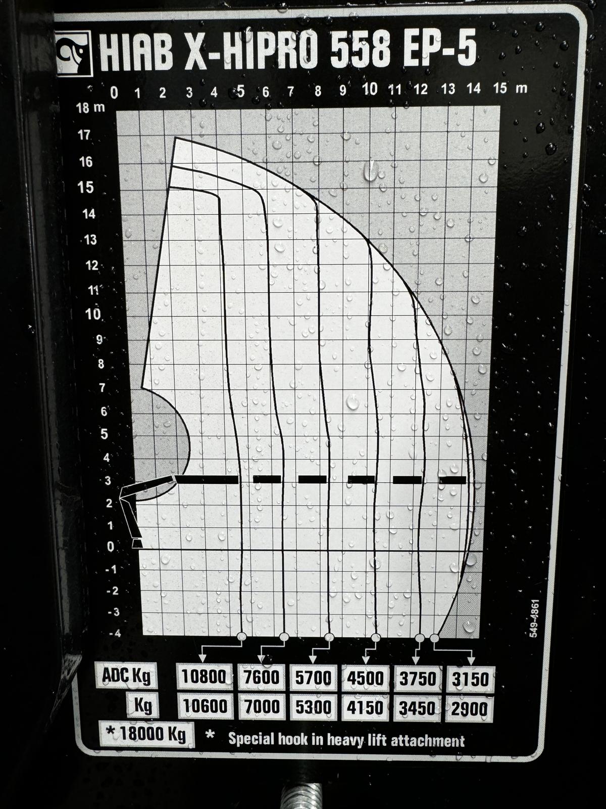 - Voorzien van Hiab X-HiPro 558 EP-5 autolaadkraan gemonteerd op achterzijde