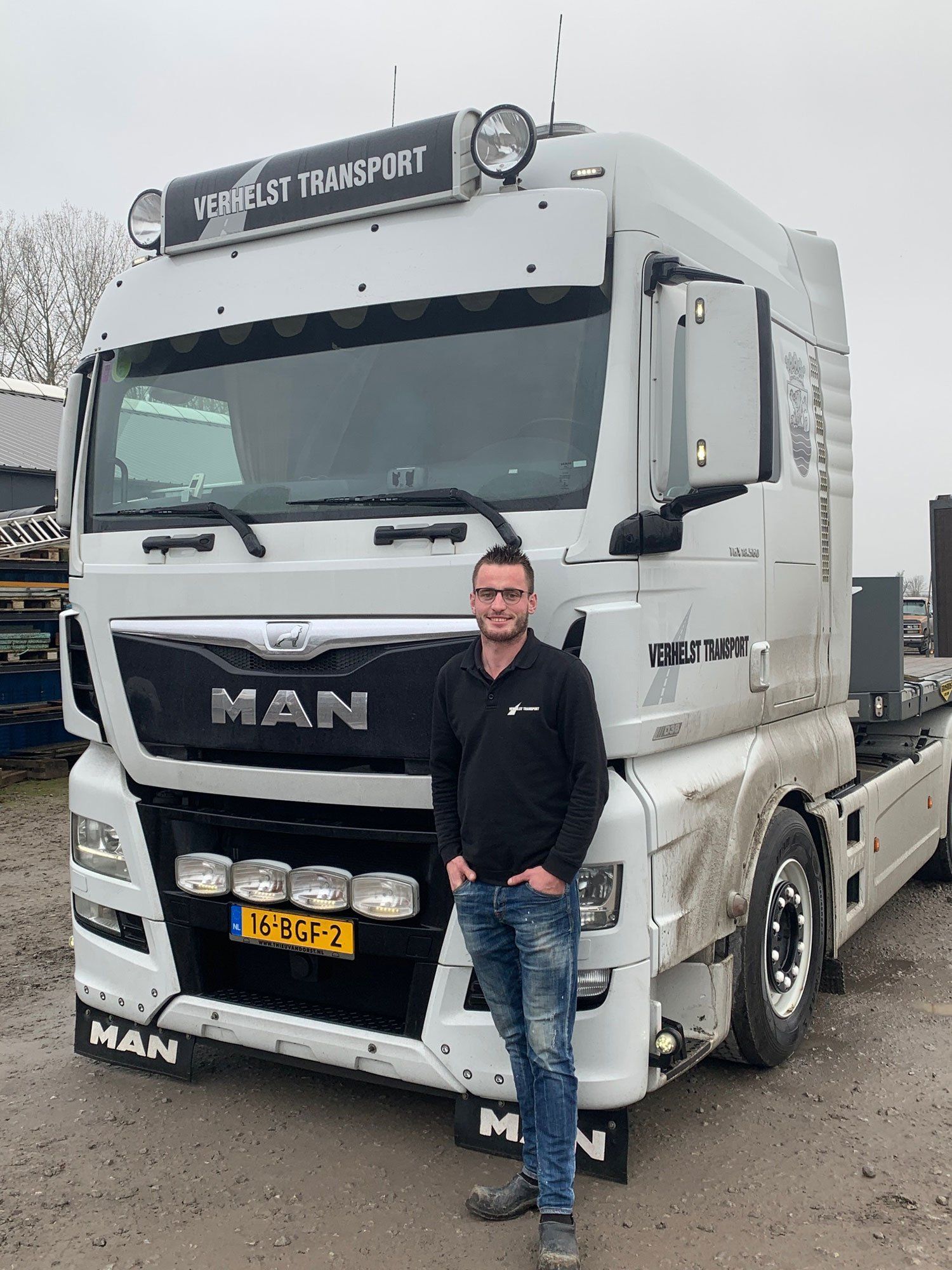“Met heel veel plezier kijk ik terug op mijn overstap van grondwerk naar chauffeurswerk op de weg. Het transportwerk over langere afstanden trok me enorm. Je hebt een baan waarin je wat betekent en veel mensen tegenkomt. Dat is echt leuk! Mijn enthousiasme heeft ook te maken met vroeger: mijn vader is ook chauffeur en ik kreeg al jong mooie verhalen te horen. Veel dingen maak ik nu zelf ook mee, Het zit dus blijkbaar in je bloed, want ik ben hem gevolgd in het chauffeursvak. Het vroege opstaan is iets waar je over kunt vallen, maar voor mij geldt dat niet. Daar heb ik echt geen probleem mee. Vroeger reed ik internationaal. Sinds ik bij Verhelst werk, rijd ik veel in de buurt, in Nederland en België. Ik doe vooral hijsklussen, zoals dakkappellen.